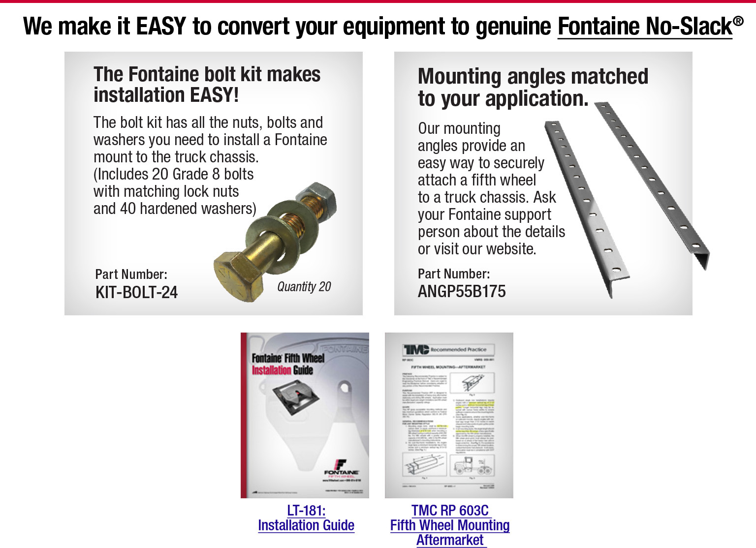 Great Opportunity to upgrade other brands to Genuine Fontaine No-SlackĀ® Fifth Wheels